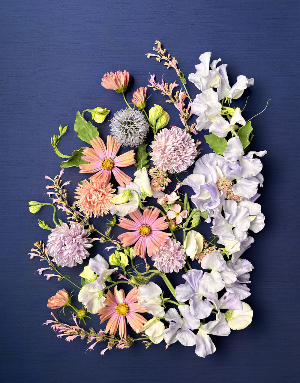 What might these flowers say if they could speak, as the ones in wonderland do? Maybe the sweet peas would offer comfort and a softness, while the cosmos & asters might be a bit jollier and more vocal, and the refreshing nature of the agastache could possibly offer a voice of renewal and inspiration. Imagining their little faces and voices is a sweet pastime to consider, especially as someone who already tends to talk to the flowers and plants I encounter. :)